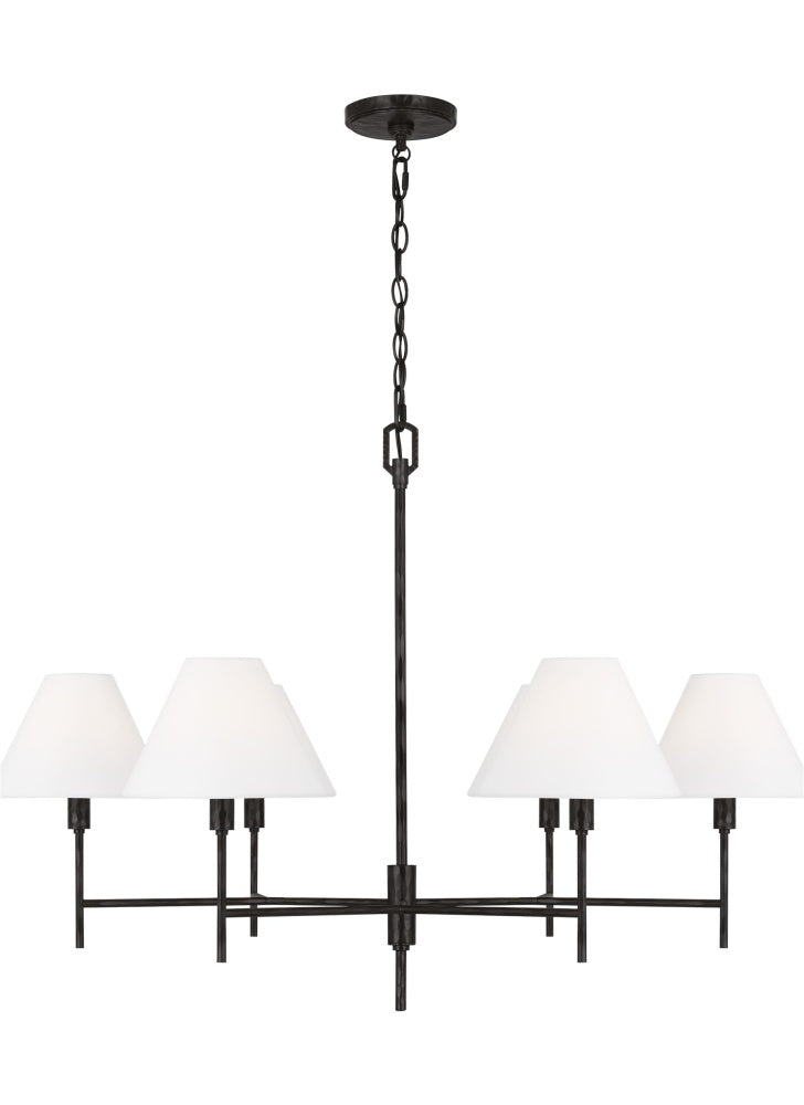 Crafted with Steel in a Aged Iron finish with white linen fabric shades