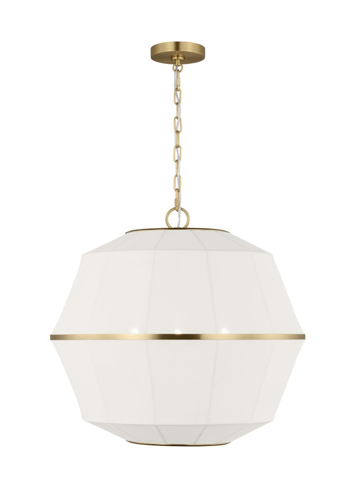 Crafted with Steel in a Burnished Brass finish with white linen shades